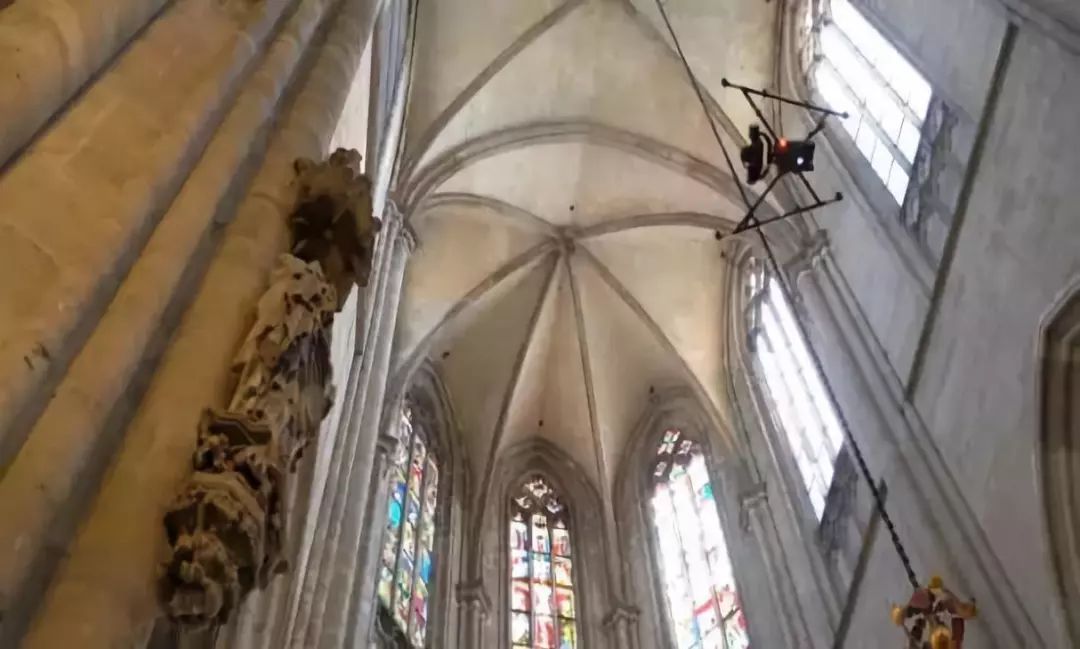 同样是使用猎鹰 8+无人机,它可以在不干扰周围环境的情况下,对易损且难以触及的教堂建筑结构进行可视化地检测。