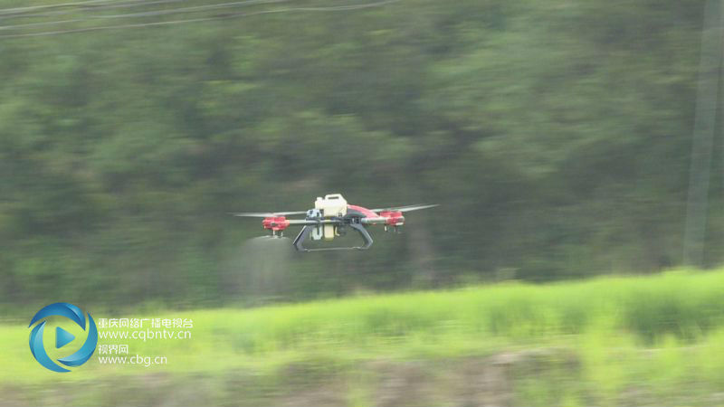 在垫江县高安镇高东村,一架无人机正在对水稻进行飞防作业,机翼两边的喷洒器喷洒出大量农药,十分钟的时间,就已喷洒了15亩田地,这样高效、便捷、新奇的施药方式令在场群众惊叹不已。