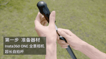 将 ONE 全景相机固定在超长自拍杆上