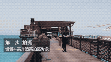找一位小伙伴,慢慢举高自拍杆并后退