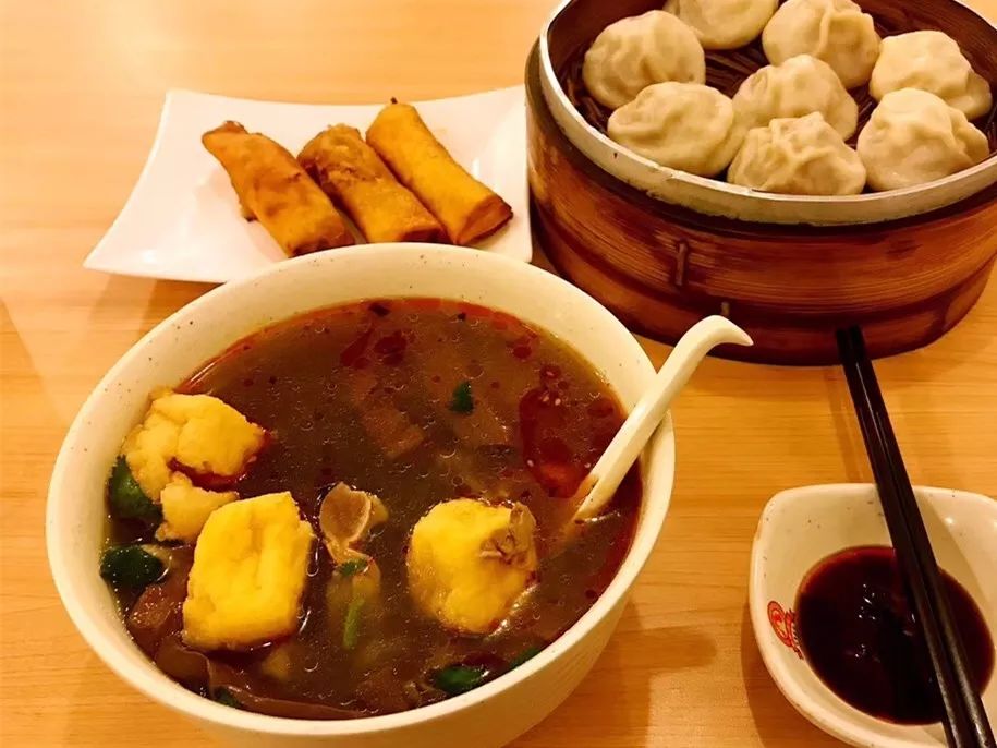 煎饺、桂花糖芋苗、鸭血粉丝汤、小笼包 … …