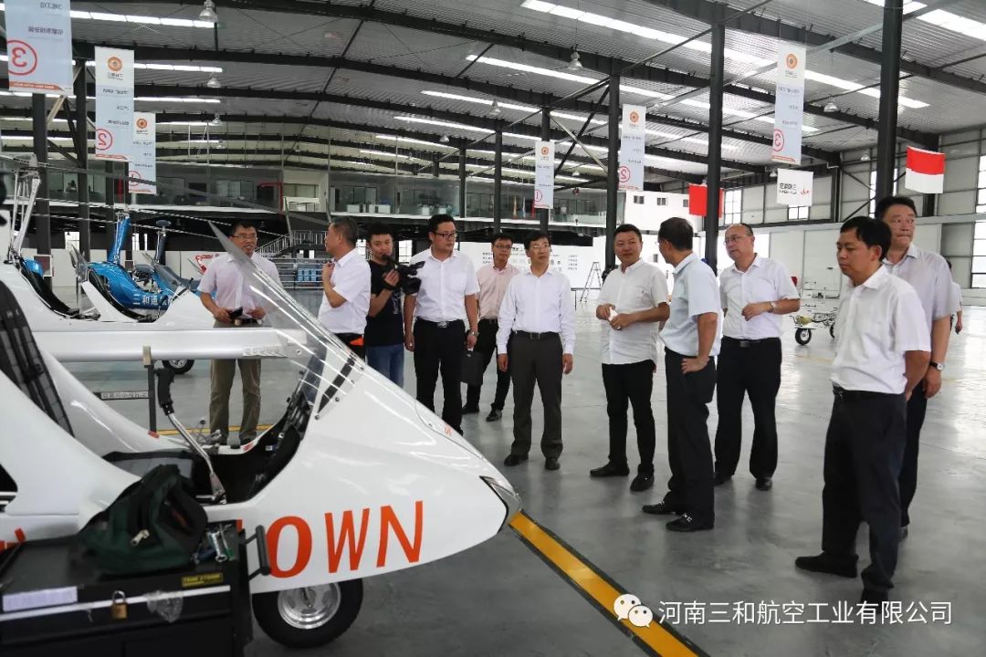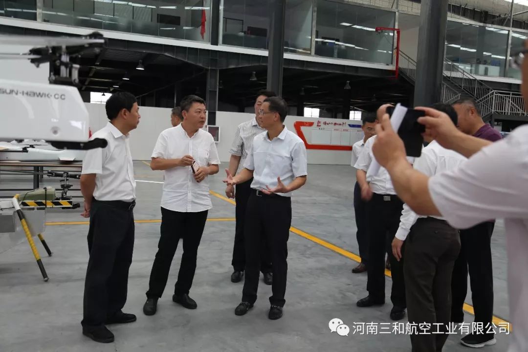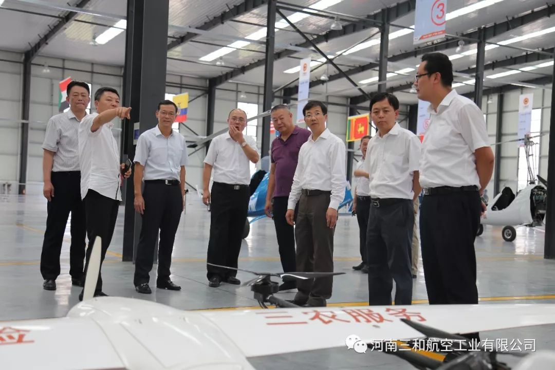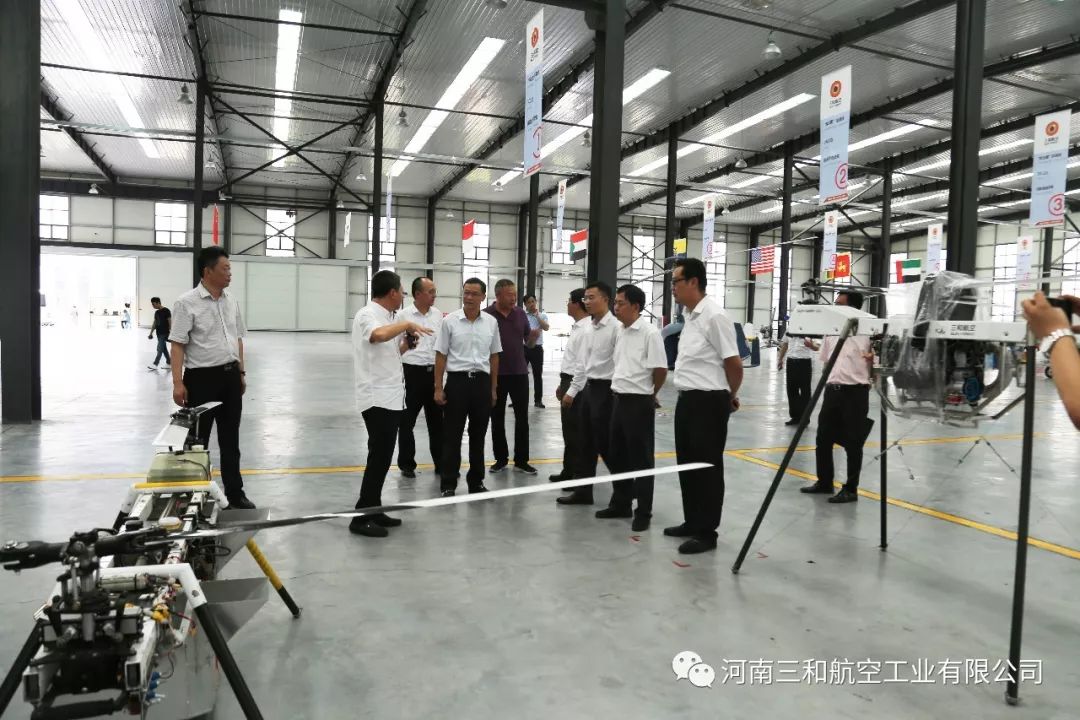河南三和航空工业有限公司作为郑州市通航试验区的代表企业,今天迎来了民航中南地区管理局局长周毅州、民航中南地区管理局人教处副处长吴灿明、民航中南地区管理局纪委监察处处长李伟强、民航河南监管局局长戚俊、民航河南监管局运输处副处长赵龙的到访。在郑州市副市长万正峰、市航空枢纽办主任王宏、上街区区长耿勇军、区委副书记李新军、副区长阎胜等领导的陪同下,一同参观考察了我公司自主研发生产的“太阳之鹰”自转旋翼机、“穿云鹰”无人旋翼机、“天眼”垂直起降复合翼无人机、农业飞播版和高楼消防版的S50“小旋风”无人机。