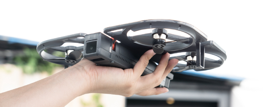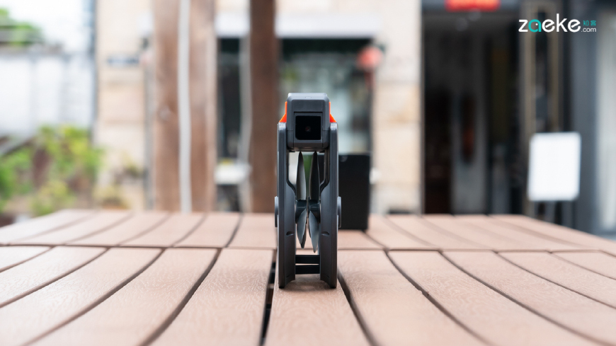 这样的身材,使得iDol可以被非常轻松地塞进普通的双肩包,甚至单肩邮差包里头。自带桨叶防护罩的设计可以让它做到“展开即飞”,这样的设计更意味着它可以全天候裸奔,而不像Spark那般外出时必须额外再携带个便携包。