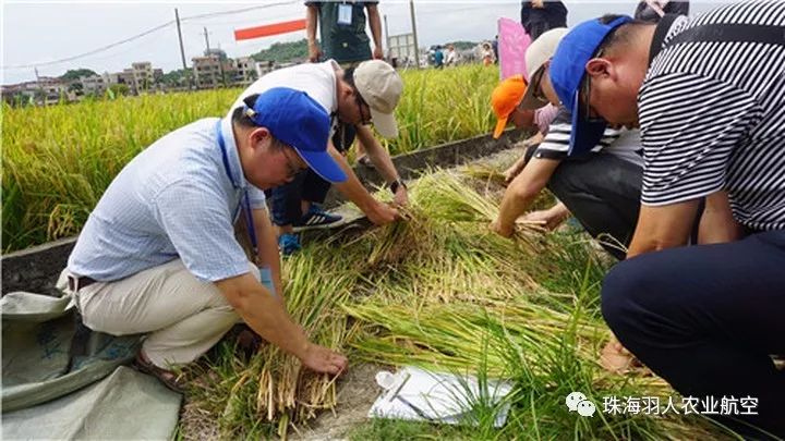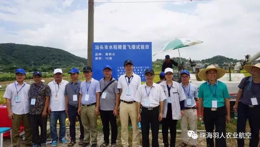 7月19日上午,省农业厅、省农机技术推广站、华南农业大学和汕头市农机研究所、珠海羽人农业航空有限公司联合在潮阳区西胪镇泉塘村举行汕头市水稻精量飞播试验现场测产观摩会。经专家组实收实测,无人机飞播水稻亩产湿谷达531公斤,相比精穴直播增产近30公斤。
