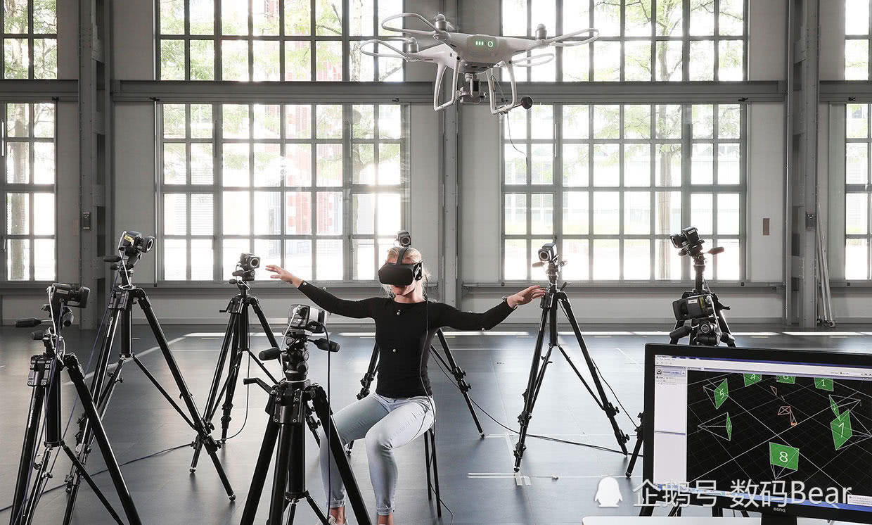 首先,他们在17名志愿者的上半身停留了十几个红外标记,让他们在虚拟现实中模拟虚拟的场景。“我们让他们以一种对他们来说很自然的方式跟随无人机的运动,”Miehlbradt说。