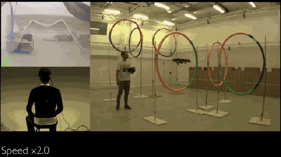 在最后的测试中,志愿者被要求引导无人机穿过6个门,沿着8字形轨迹排列。在前面提到的最低限度的训练中,他们做得很好,驾驶着四轴飞行器在没有碰撞的情况下通过大门。