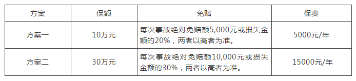 用户可根据挂载设备价值灵活选择保额。目前我们提供两个方案,覆盖10万元与30万元保额,具体方案如下表。