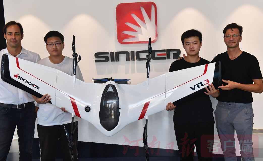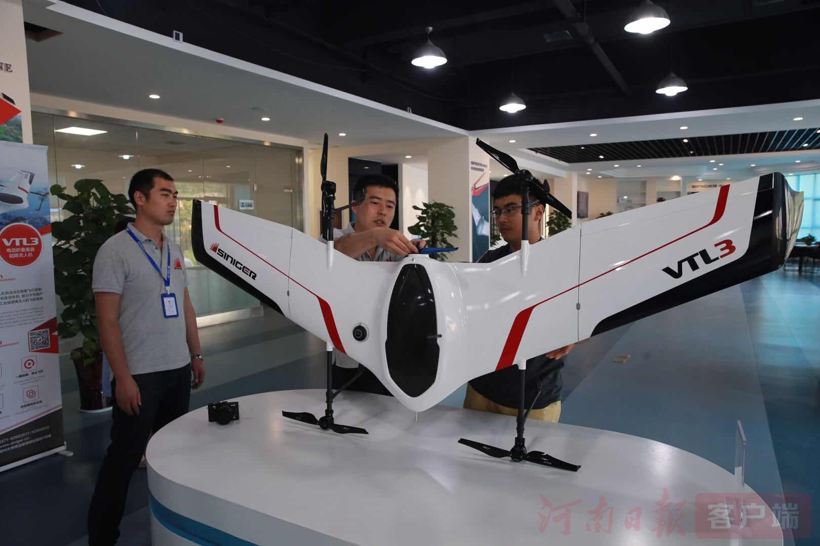 7月25日,郑大西亚斯国际学院校园内,郑州山雀无人机科技有限公司举行了Siniger VTL-3新款无人机交付仪式,并举行了试飞演示。这款无人机是国内首款电动、可折叠、垂直起降固定翼无人机。