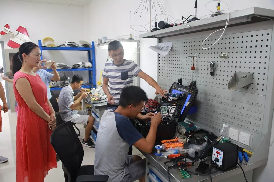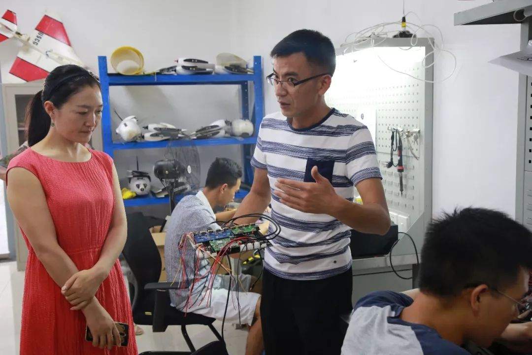 考察组先后参观考察了技术研发部、展示厅、飞服中心、操作间等部门,每到一处就仔细查看相关产品,详细询问相关的新知识、新技术,了解目前无人机的市场情况。