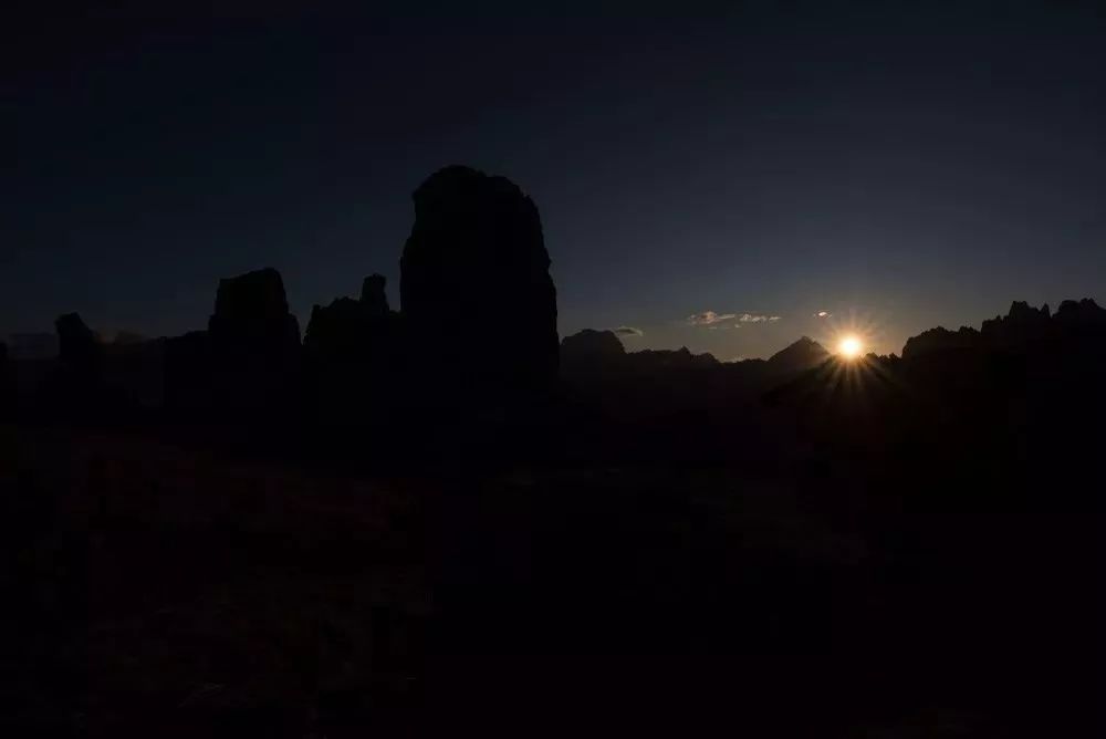 本片的原片一共有 3 张,分别是欠曝 2 档拍摄的照片(左下图),记录太阳高光细节,正常曝光的照片(右下图),以及过曝 2 档的照片记录地面阴影细节(上图)。