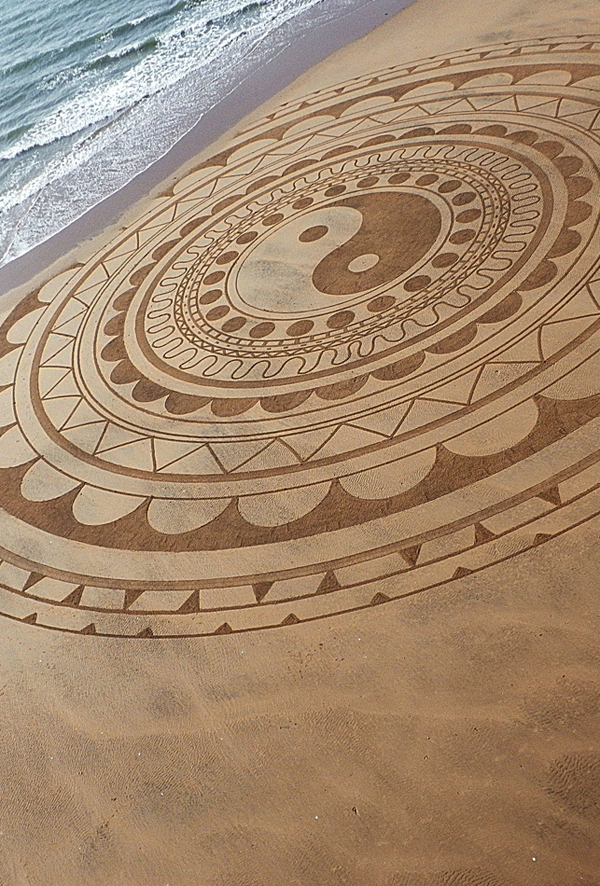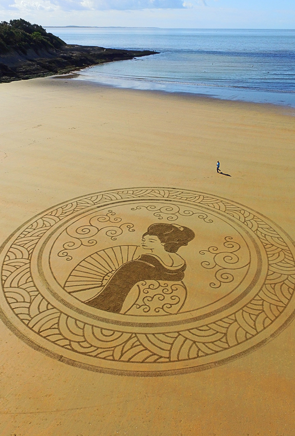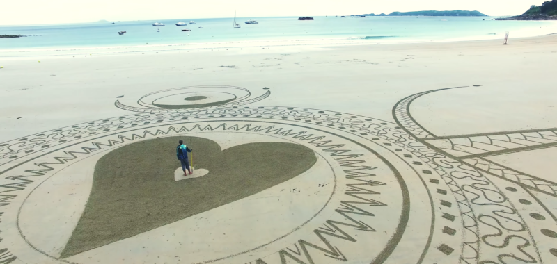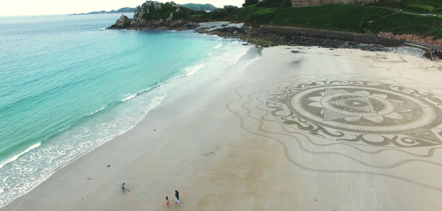 今年 6 月,法国西北部小镇佩罗斯基雷克(Perros-Guirec)举行了布列塔尼沙滩艺术节(Festival Traezh Breizh),邀请了多位艺术家表演「耙画艺术」。法国无人机公司Chimair趁海水冲上沙滩前,利用航拍机纪录一幅幅巨型沙画。主办机构也不忘提供耙画和拍摄心得,让各人一尝当艺术家的滋味。