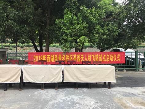 7月30日下午,4架无人机在杭州梅家坞梅岭南路两侧起飞。这是西湖景区管委会首次试用无人机防治西湖龙井茶园,试点的茶地就是梅林南路两侧所在的200亩梅家坞茶园。