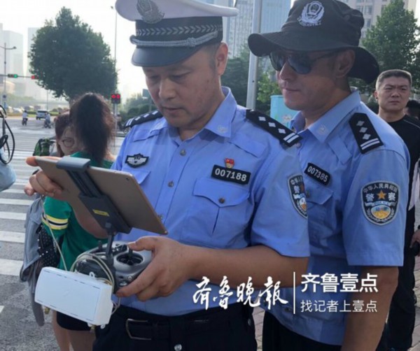 7月31日上午7点,济南市经十路洪山路口,“空中交警”多旋翼无人机正式上岗执法,主要针对开车玩手机、打电话违法行为进行抓拍。