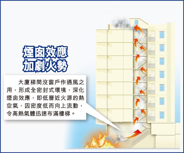 高楼火灾具有破坏力极大、扑救难度极大、火灾蔓延途径多等特点。高层火灾破坏力一定程度上源于高层建筑的“烟囱效应”——高层建筑内部有大量的管道、竖井、楼梯间、电梯井、排气道等各种横、竖向管井、通道,从地面一直通到最高层。一旦发生火灾,这些部位就成了一座拔风的“烟囱”,加速火势的蔓延,且蔓延途径多、速度快。而且是建筑物越高,“烟囱效应”越明显。
