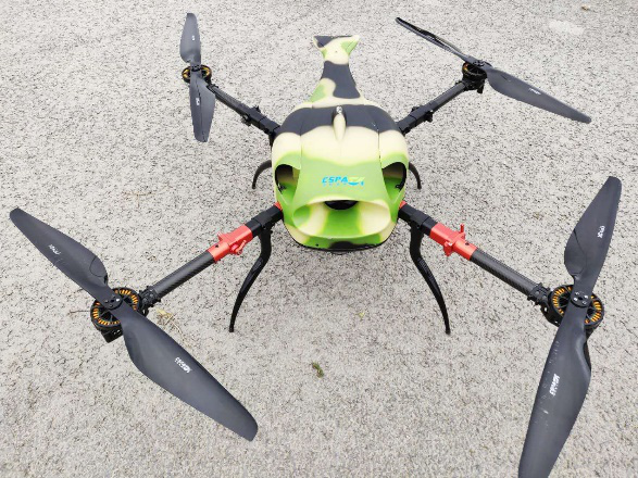 测试现场使用的四轴多旋翼油电混合无人机