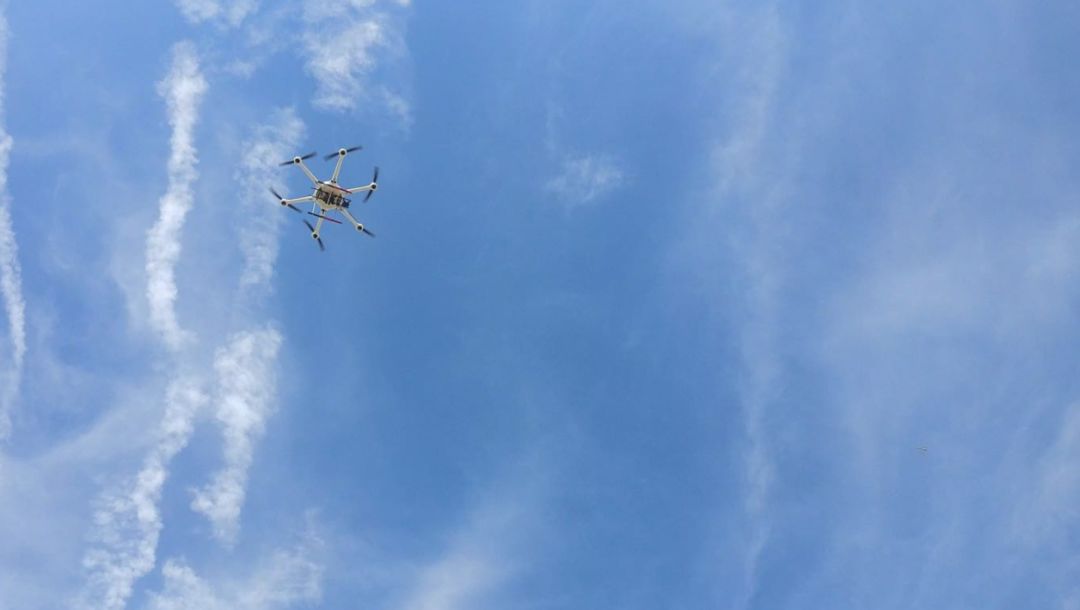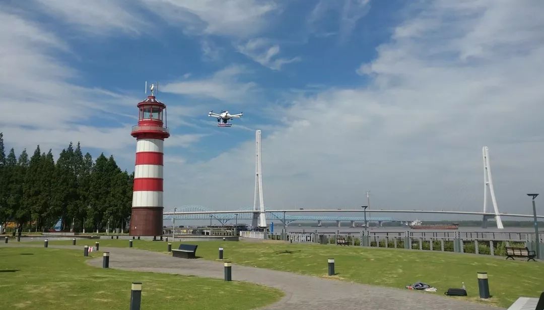 ▲盖亚160(精英版)混动无人机在南京三桥鱼嘴公园进行河道巡查作业。