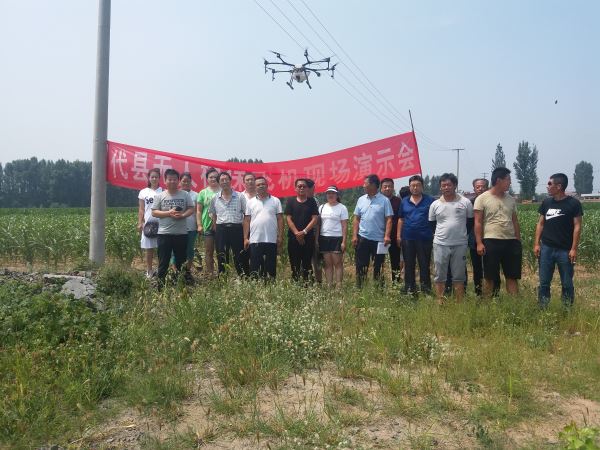 为集中开展好主要农机化新装备、新技术作业演示会,提高山西代县农机发展水平,2018年7月6日,代县农机中心组织全体工作人员、种粮大户及相关农机专业合作社,在新高乡赵村益民农机专业合作社(高粱全程机械化示范基地)组织召开无人机植保技术现场演示会。