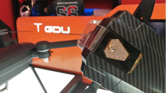 让人眼前一亮的是GDU普宙品牌总监武女士给大家带来的神秘礼物——专属定制的幻彩系列无人机,其中,尤以镶有1.5克拉真钻的GDU O2无人机最受瞩目,刚亮相便吸引了大量玩家驻足观看,瞬间燃爆全场,欢呼喝彩声经久不息。这款无人机镶有1.5克拉真钻并添加了彩绘、雕刻等时尚元素,完美兼具了飞行科技和时尚娱乐,让科技更有温度。