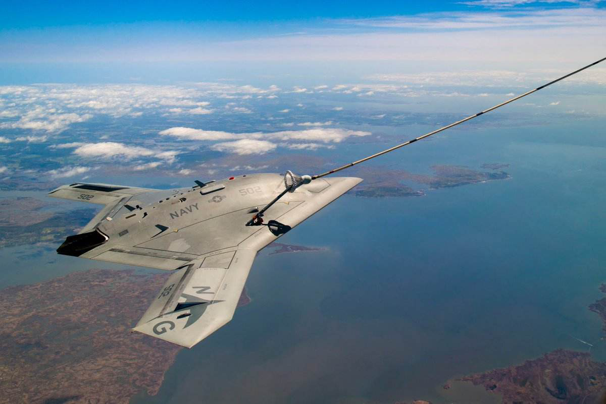 图为美军X-47B进行空中加油