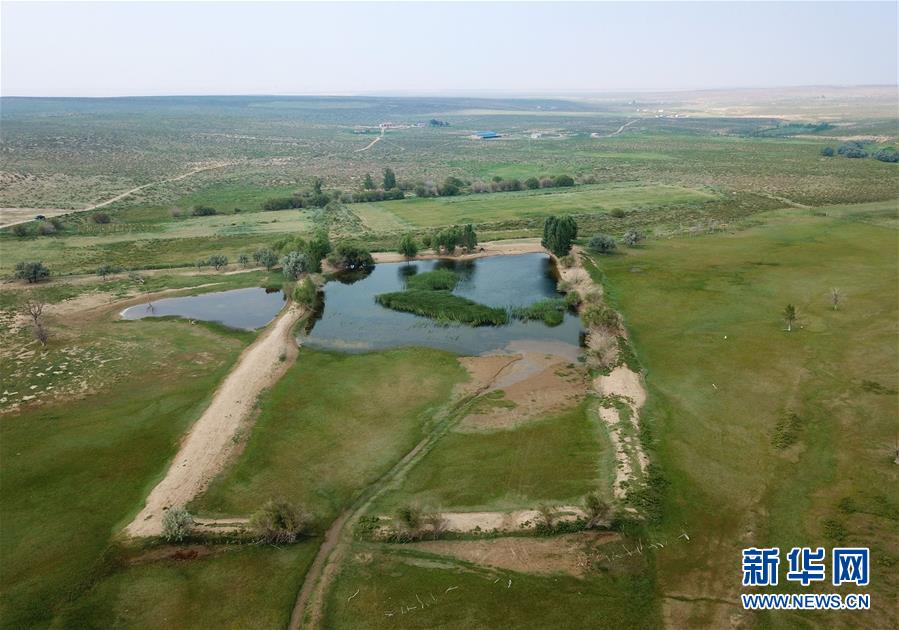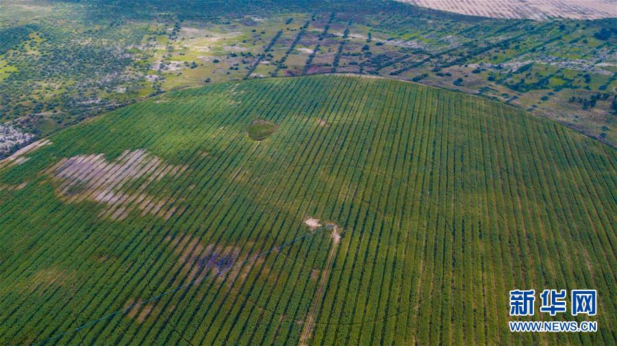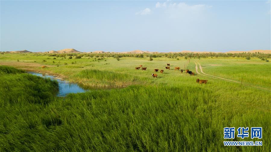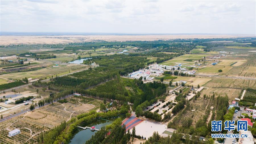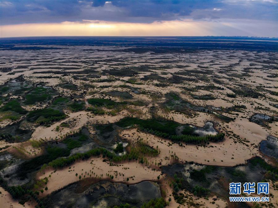 内蒙古鄂尔多斯市恩格贝生态旅游区(6月8日无人机拍摄)。 新华社记者彭源摄
