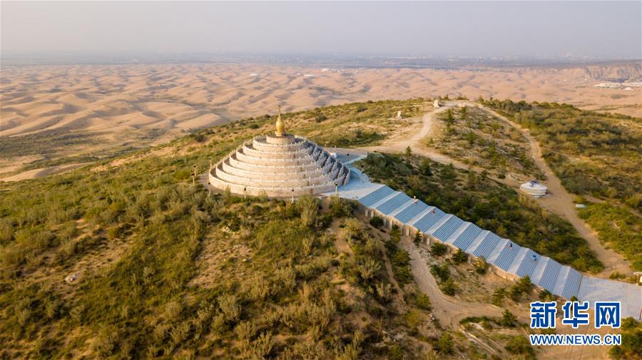 库布其沙漠中的响沙湾莲花度假酒店(7月31日无人机拍摄)。 新华社记者彭源摄