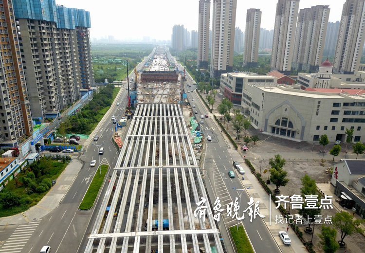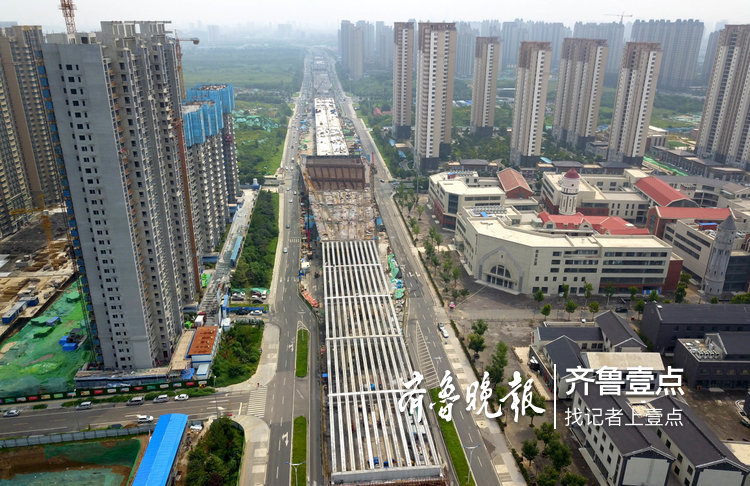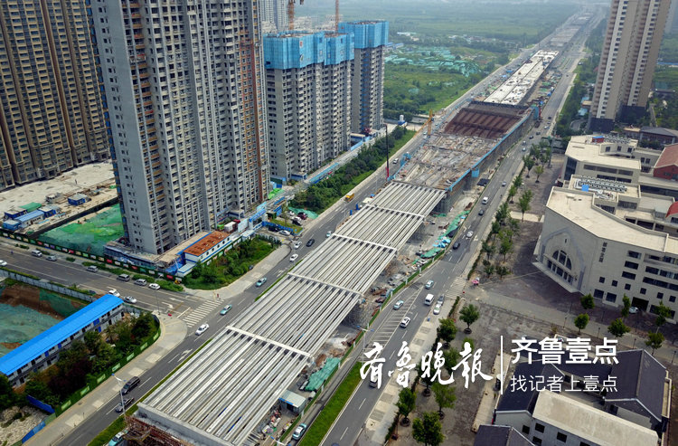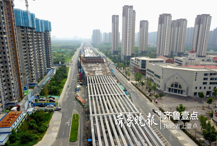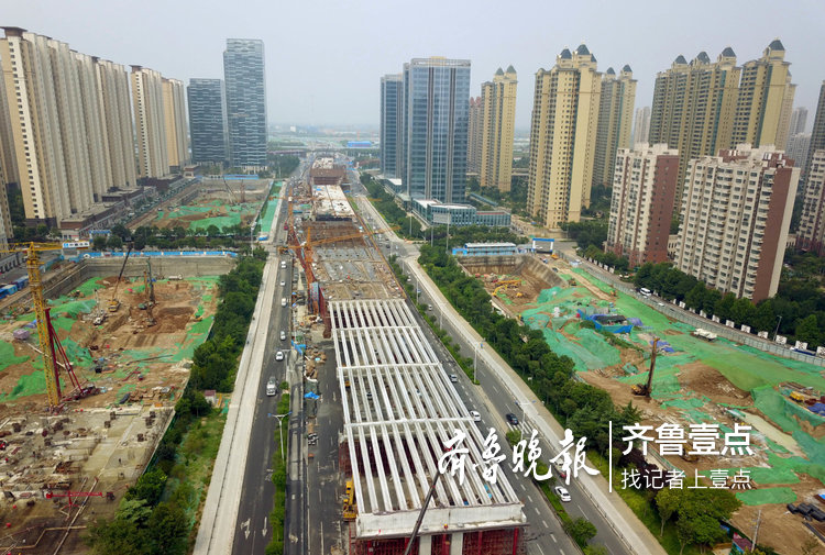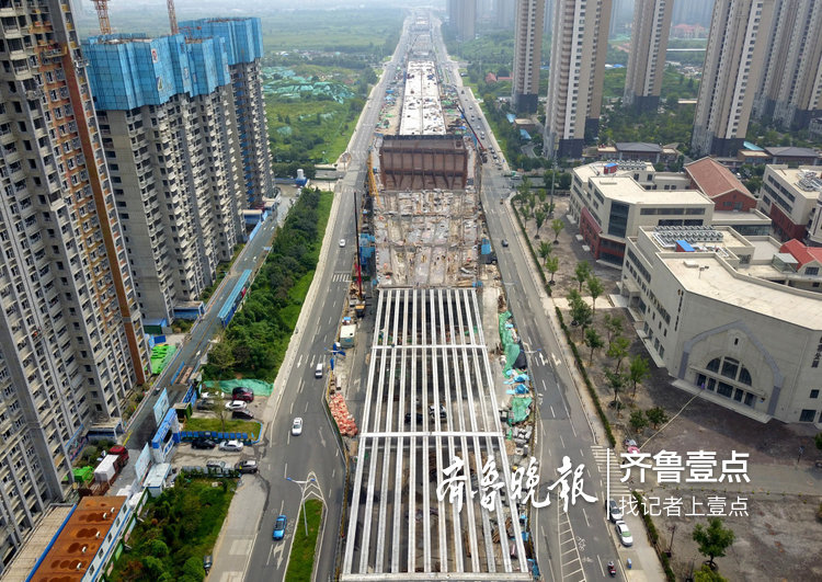 近日,用无人机航拍正在施工中的北园高架西延工程,蔚为壮观。据了解,北园大街快速路西延部分路段采用吊装工字梁的方式施工,替代以往的一体式浇筑箱梁。 齐鲁晚报·齐鲁壹点记者 王媛 摄