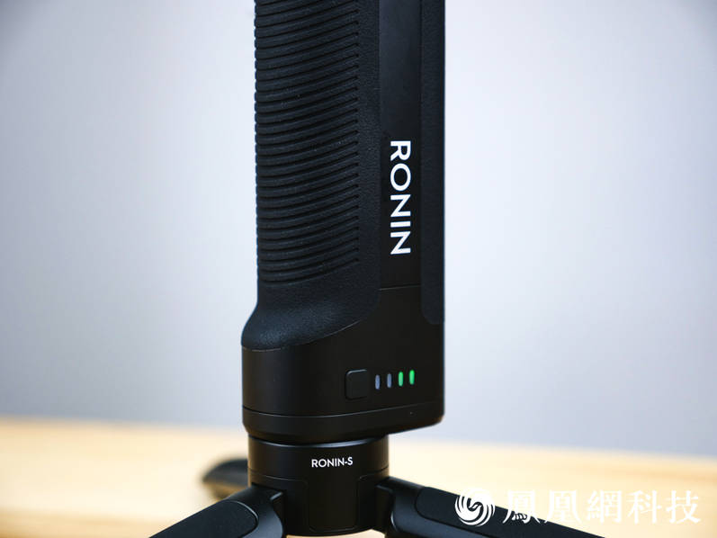 如影S采用了分体式的设计,下半部分的手柄内置了2400mAh的电池,官方称其续航能够达到12小时,经过我们一段时间的体验,如影S的续航基本在十个小时左右,充一次电能够完成多次拍摄任务,而充满电需要两个小时左右。手柄的长度足够两只手同时握持,手柄的外部包裹着橡胶,并刻有防滑条纹,整个手柄非常有质感,手柄下部有电源键和四个电量指示灯。