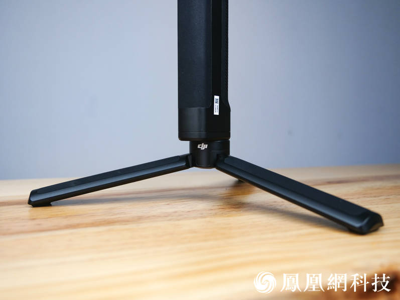 如影S附带了一个小的三脚架,用来放置设备,在使用时能够作为手柄的延长,使得握持更加舒服。