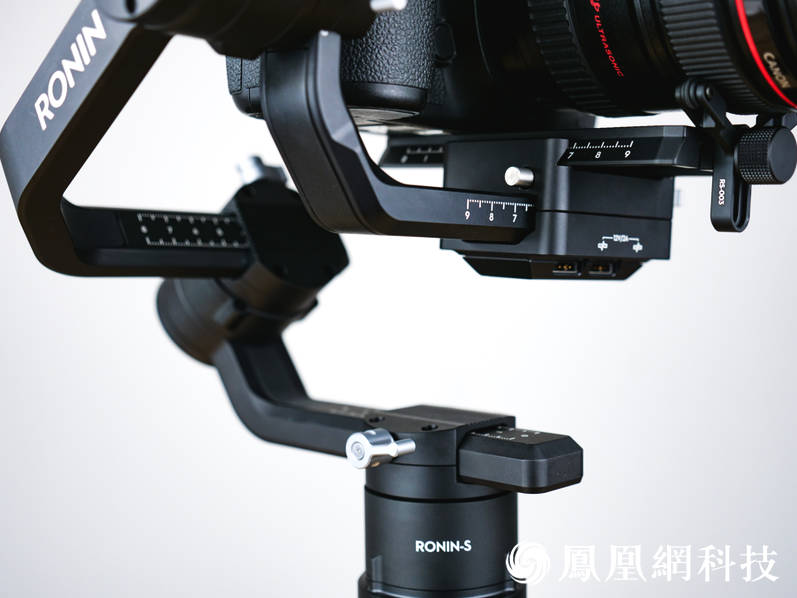 如影S提供了十分丰富的接口,包括两侧的八针接口(一侧安装了跟焦器),云台底部还有双4针CAN Bus接口,必要时可以为相机和第三方设备供电;标配的跟焦轮上甚至还有一个D-BUS接口,可以连接第三方遥控器。从这些相当专业的接口中我们能够看到,如影S其实是能够无缝融入到一个电影的拍摄流程中的。