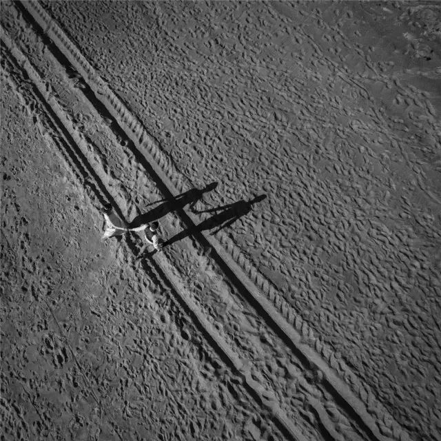 他的绝大多数作品都是抓拍,一次在波罗的海旁边的克莱佩达参加朋友的婚礼,长长的影子,两人手牵着手,这个画面很容易让人想起一本法国小说——《偷影子的人》。