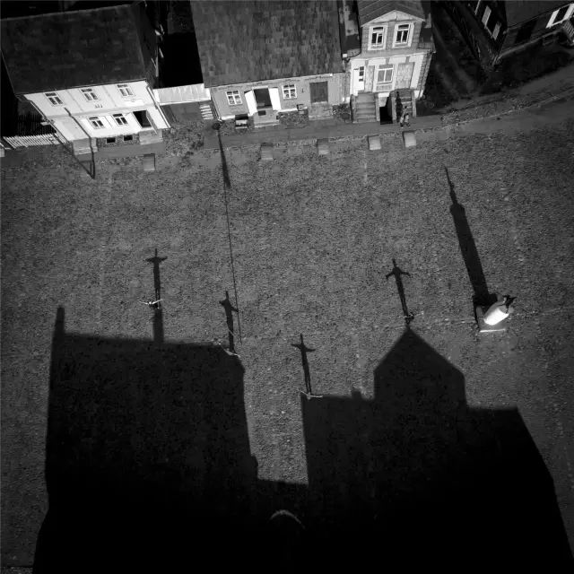 用影子讲故事,后来成了 Karolis 固定的创作主题。在立陶宛的 Nida,一个人行走在房子的阴影里,没有投影的部分如同道路,Karolis 给它取名为《框》。他解释道:“我们常常被自己的生活给困住,缺乏选择,但事实上限制只在我们的头脑里,我们有机会做自己。”