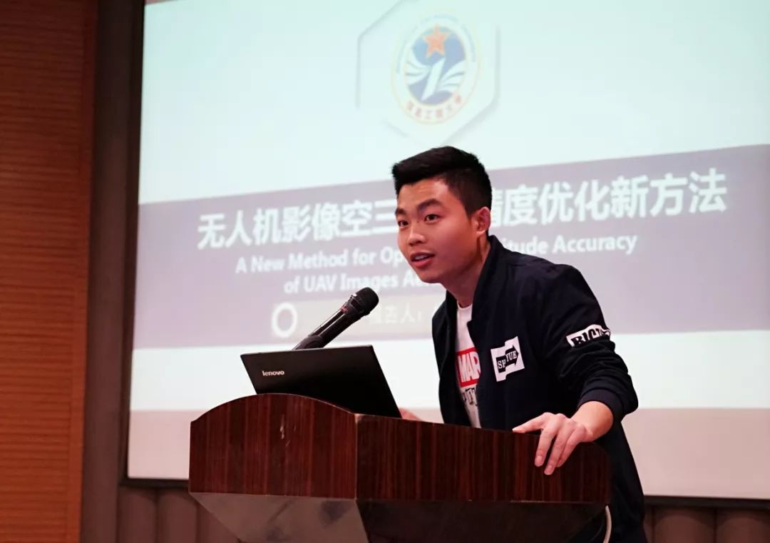 图为杨老师为军测学生们分享团队在无人机航测领域的最新研究报告。