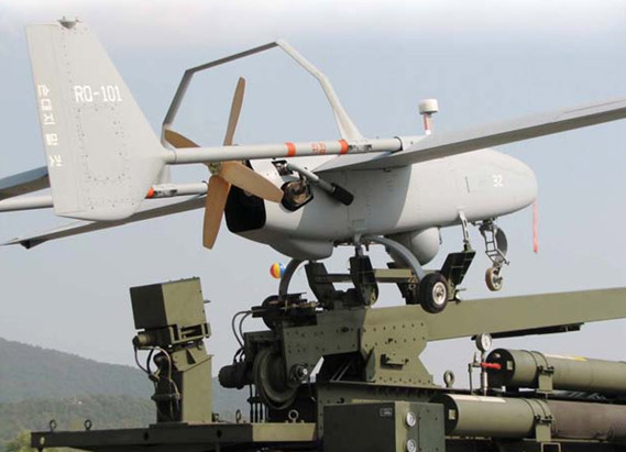 资料图:韩军自行研制的安装在车载发射架上的RQ-101无人机。