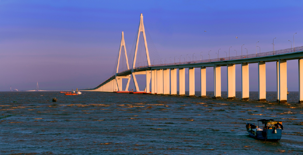 2016年4月,国务院正式批复设立浙江舟山江海联运服务中心。同年12月,浙江省政府出台《舟山江海联运服务中心建设实施方案》并提出到2020年基本建成通江达海、功能健全、服务高效的现代化江海联运服务体系的目标。图为杭州湾跨海大桥。新华网发 张翼摄
