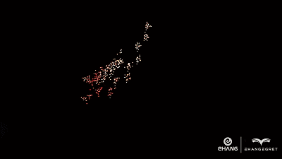 与以往表演不同,这次是天幕连环画形式,对表演流程控制的要求更高。亿航白鹭工作人员在设计画面程序以及现场操控时,需要对每架无人机起落升降的次序、时间的控制、画面变换的连贯性控制得非常精准和流畅,这样才不会在飞机起降之间造成画面缺失,才不会影响每“帧”天幕连环画的连贯与精美。