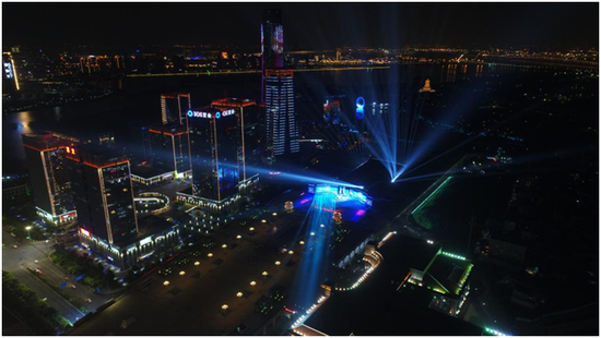 夜幕中,整个舞台与集美夜景交相辉映,完美地融合在了一起。