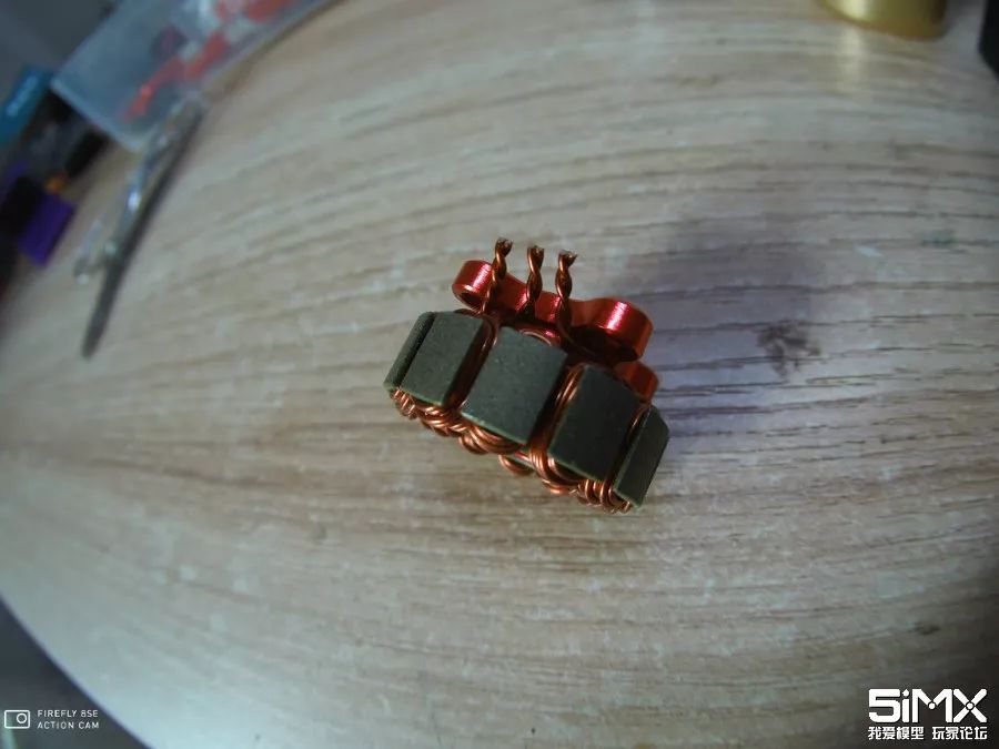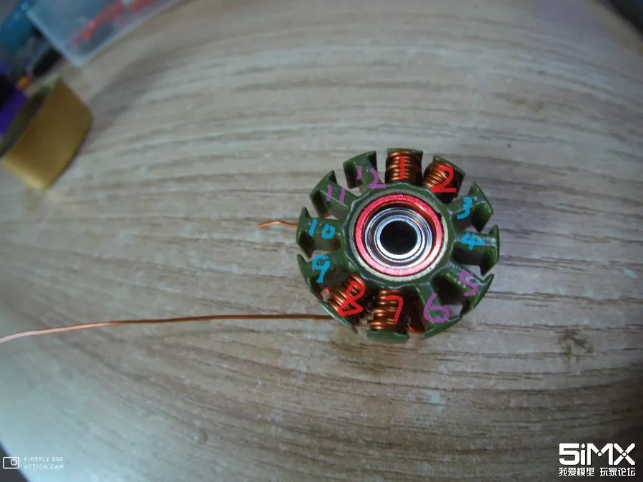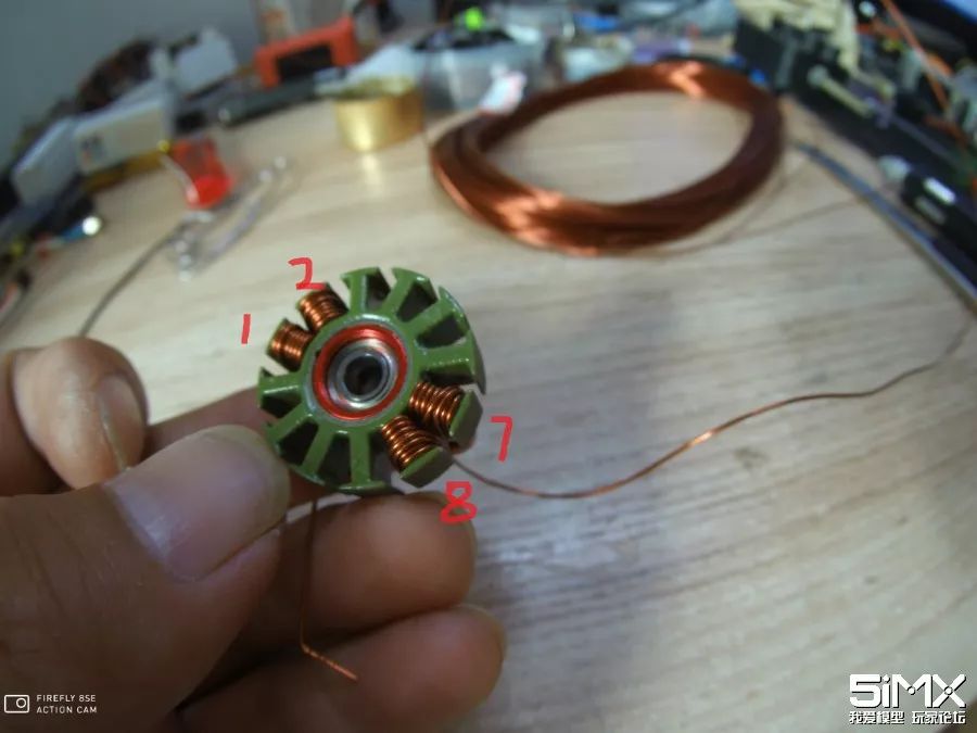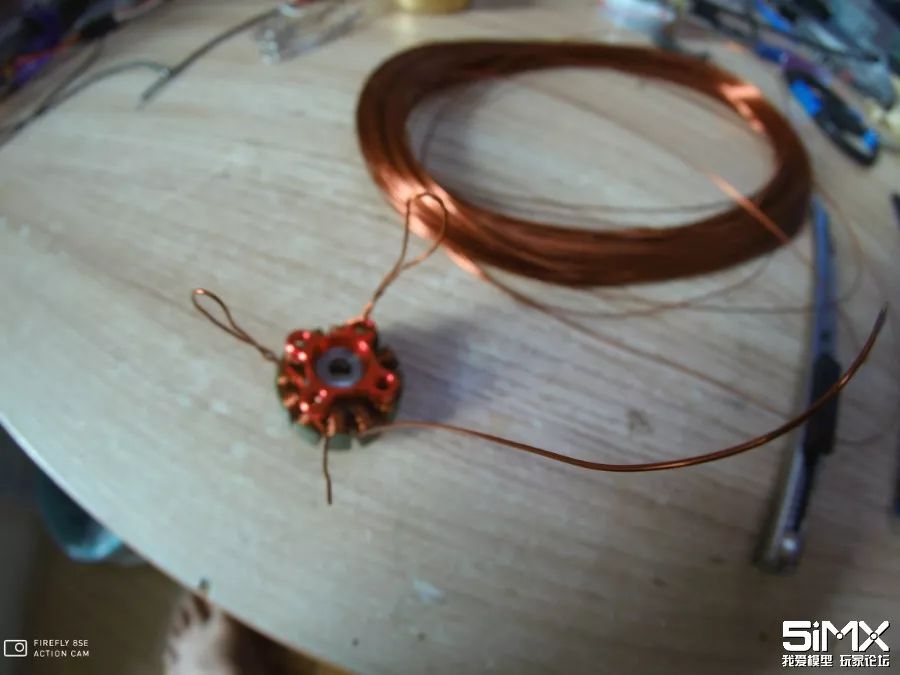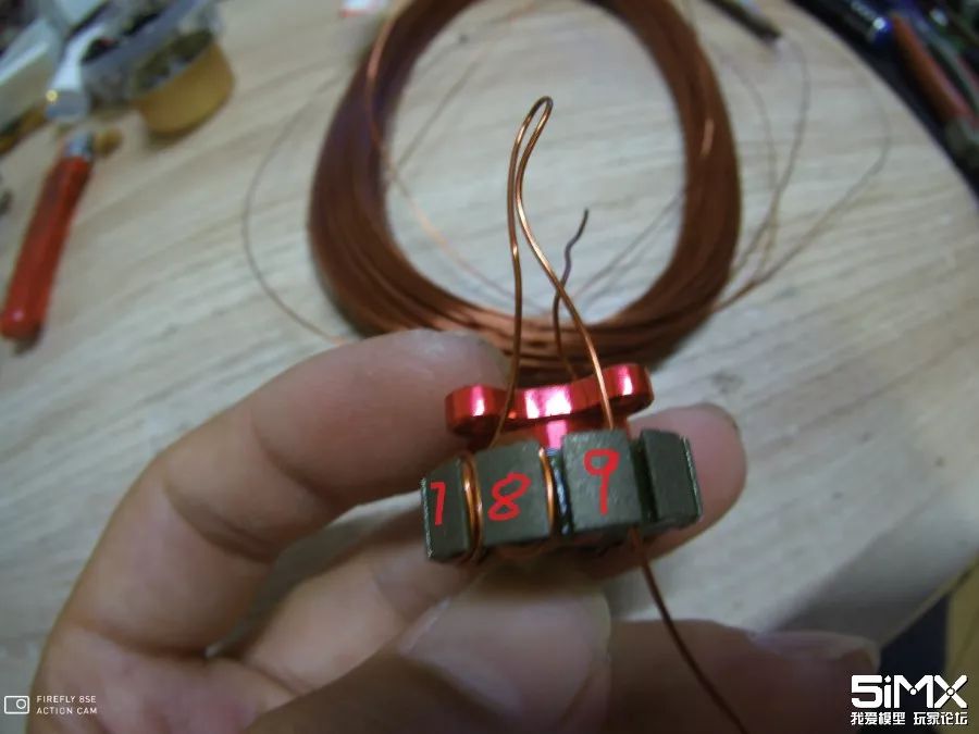 先说下拆,无论是改KV还是烧毁,都要拆的时候数圈数。否则你就必须有对应的资料。否则没法绕。一组为对应四个定子绕组,这一根拆下来知道单股圈数后备用,绕三根的时候可以用这个长度做参考,预先剪3根线,省的拖着整捆漆包线绕很麻烦