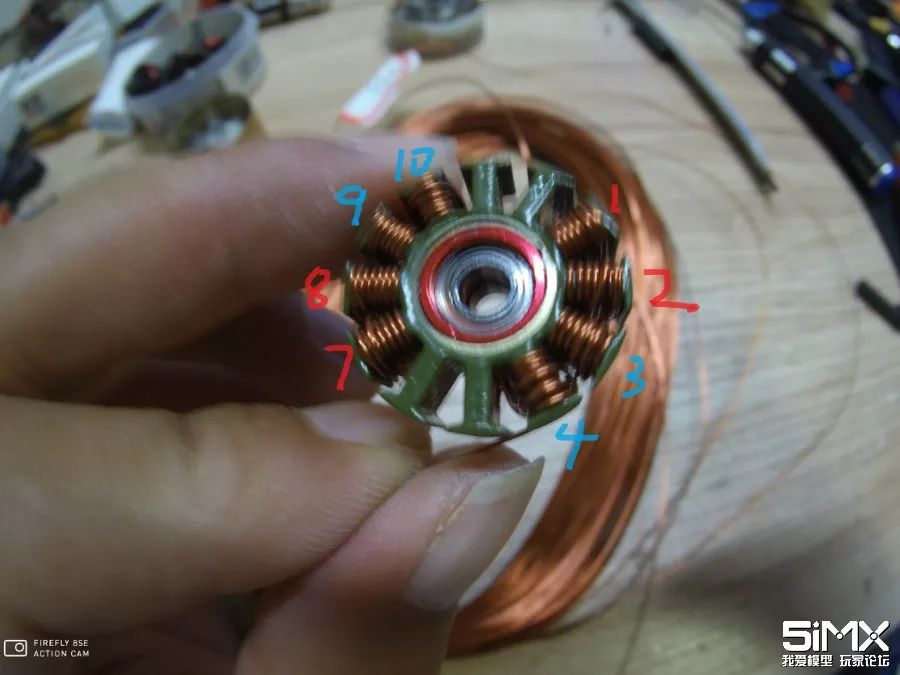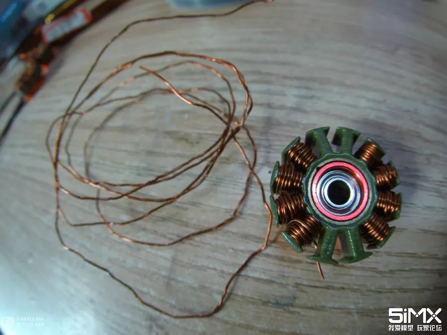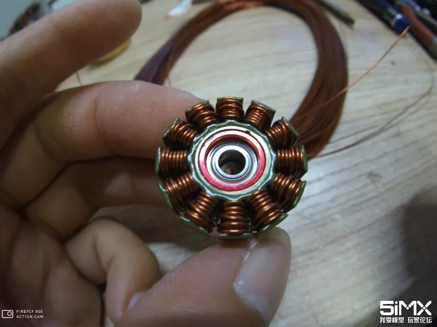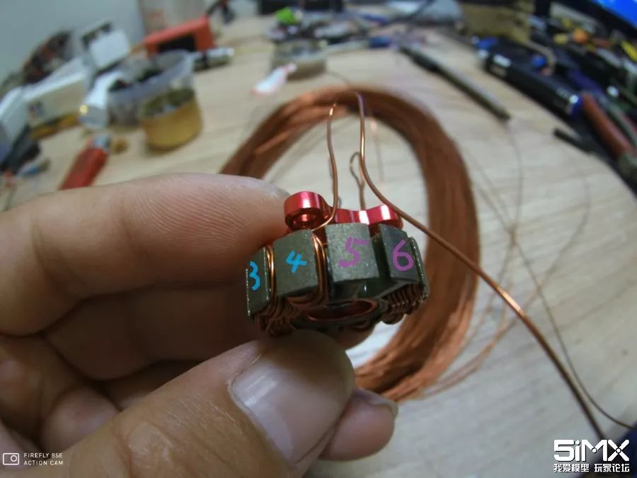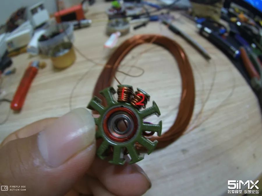 先说下拆,无论是改KV还是烧毁,都要拆的时候数圈数。否则你就必须有对应的资料。否则没法绕。一组为对应四个定子绕组,这一根拆下来知道单股圈数后备用,绕三根的时候可以用这个长度做参考,预先剪3根线,省的拖着整捆漆包线绕很麻烦
