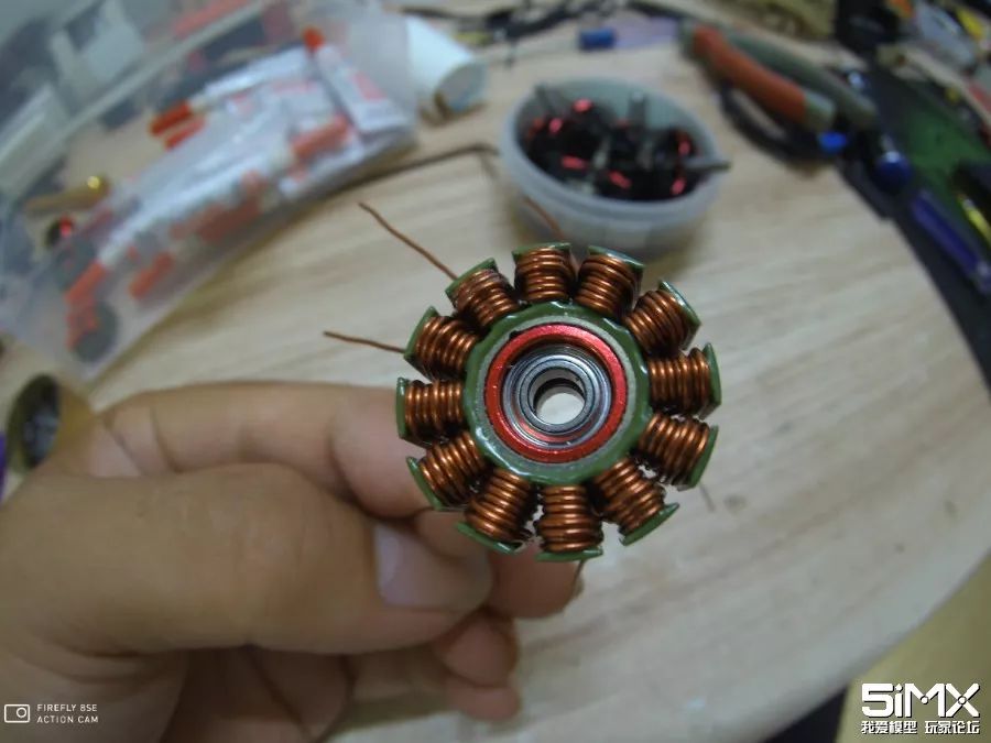 比如1900,拆的时候数圈数是11圈,用1900除11得到一圈是173左右KV。。。然后你要增加KV就是减少圈数减少两圈就是1900+173+173=2246,然而少了2圈必须保持原有满槽需要略微提升线径,比如1900用的0.53,那么2400你就上0.58。还有。买漆包线一定要问清楚,线径是包含漆皮的厚度还是纯铜线厚度,本次改KV我就买了不含漆皮0.58的线,结果是绕不进去的,漆皮大约0.05厚度,最底层整层都增厚之后,相邻的绕组你在也绕不进去第二层了。