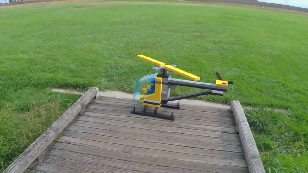 直升机虽是 Lego 外观,但它其实并非由 Lego 部件组成。为减轻重量而成的上升压力, Woodworth 以发泡胶板作为机身材料,亲手裁切成 Lego 造型,一台放大版 Lego 直升机就这样诞生了!