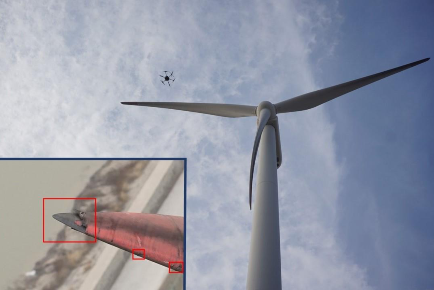 在风电行业,扩博智能为风电基站提供“特种飞行机器人+机器视觉+数据”的解决方案,利用 AI 图像识别技术对风机叶片进行巡检。