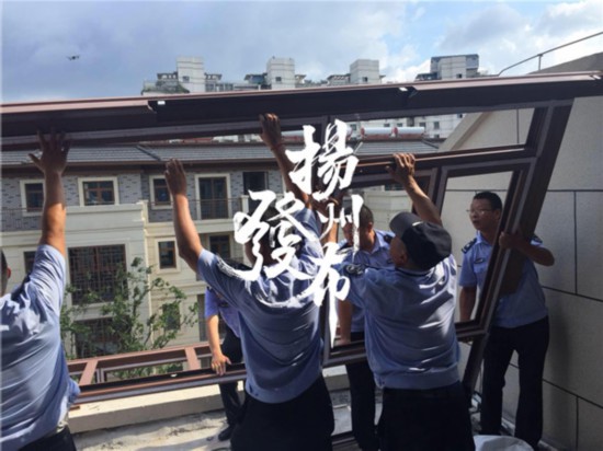 16日上午10时多,梅岭街道城市综合管理系统后台工作人员发现,在外飞行的无人机传回的画面显示:辖区奥园观庭一处楼顶正在搭建阳光房,当即向上汇报。几分钟后,梅岭综合管理大队队员即赶到现场进行制止。下午2时30分,10多名综合管理队员来到现场拆违,3时30分违建全部被拆除。自成立以来,无人机中队已发现10起违建,且都及时拆除。