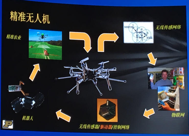 无线传感网络是无线通信方式形成的一个多跳自组织网络。机器人在其中发挥的不是一个网络系统的作用,而是一个桥梁的作用,它的传感器连接了网络世界和物理世界。从模拟世界到数字世界,机器人可以形成一个闭环。我在实验室所做的很多工作和传统所说的精确或者精准不太一样,我会强调是怎样实现这样一个精准的,例如精准无人机可以通过六个自由度实现更高的精准度。
