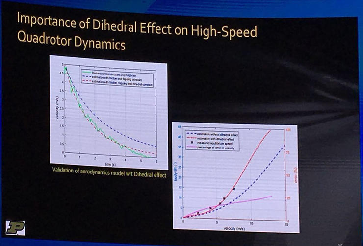 这样会带来一些新的问题,有些技术细节,例如想要无人机的旋翼旋转的话,一方面需要旋臂垂直旋转,另外也要考虑平行向内旋转。这和固定翼无人机非常相似,有些机翼是平行翼,有些机翼是倾斜翼,这种倾斜翼会对飞行有特殊影响,这里我们通过对其进行优化,在力上实现最优效果。无论是从哪个方向旋转,我们都要对其实现最好的调校,考虑到空气动力学的影响,稍做调整就可以移动得更快。实际上这种上反角效应即使是四旋翼无人机,可能在实际的飞行速度上都会有20%的误差。
