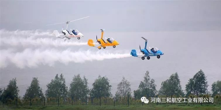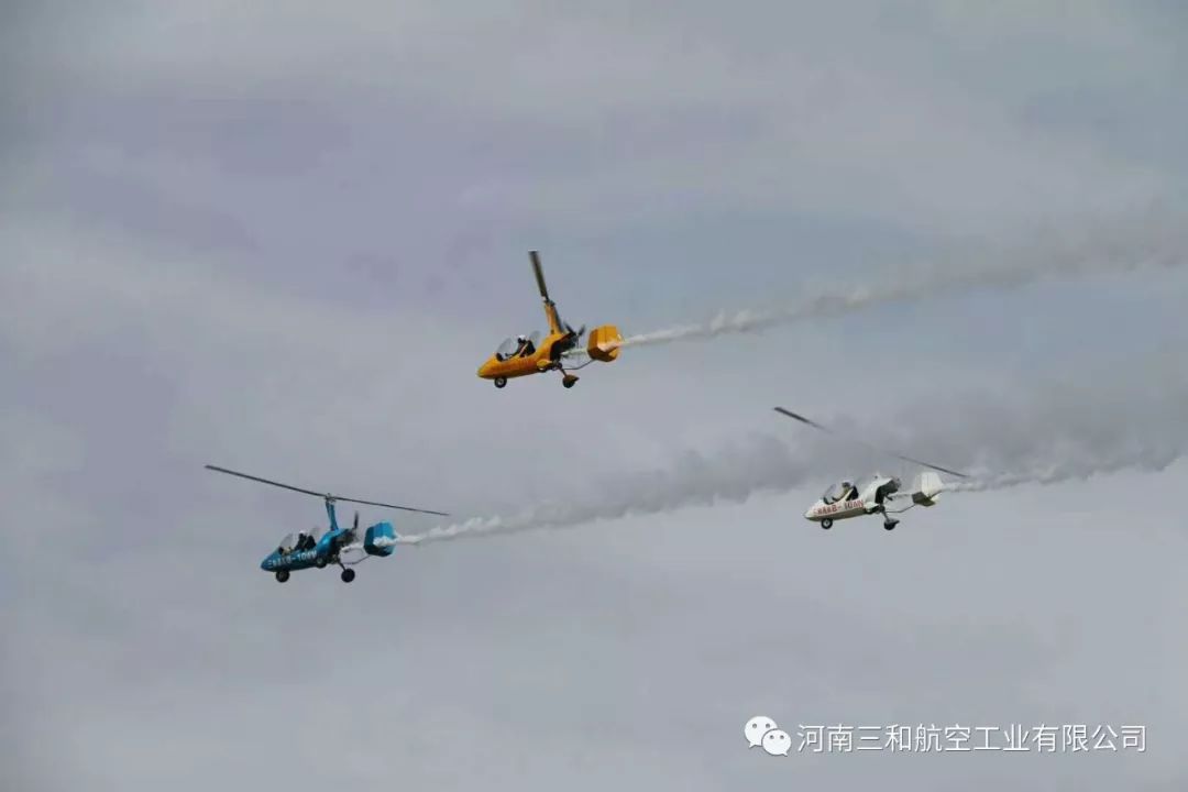 飞行大会期间,我公司每天将为大家带来精彩的“太阳之鹰”自转旋翼机三机飞行表演。
