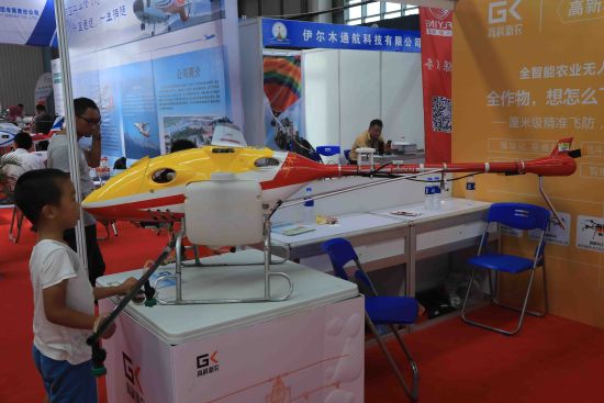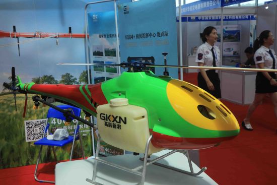第七届沈阳法库国际飞行大会暨无人系统嘉年华上展示的农用无人机。 沈殿成 摄