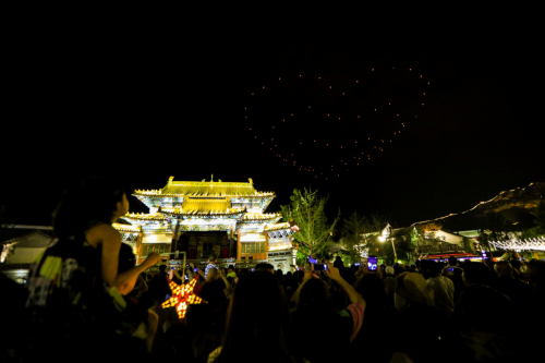 本次孔明灯无人机编队表演时间从7月15日开始,一直持续到9月15日。也就是说,我们可以大饱眼福啦!是不是想想都觉得兴奋?!近百架无人机携带孔明灯同时腾空,简直自带炫酷效果,更别说期间还有空中悬停、流星雨等各种造型炫技了,抬眼便是漫天红灯,简直叫人美不胜收!在夜幕中,承载着美好愿望的孔明灯显得分外迷人,恍惚中,这个长城下的星空小镇进入了那个燃灯赏月的纯粹时代!