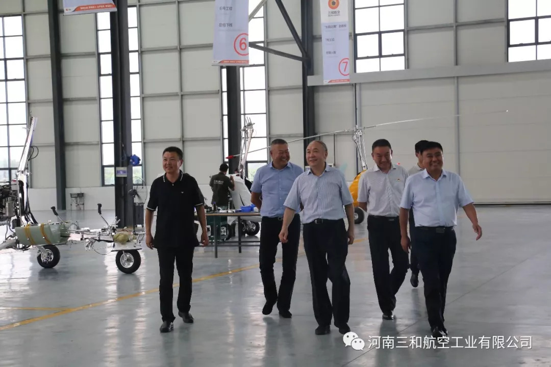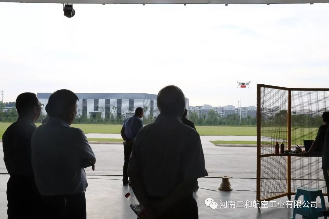 河南航空业协会常务副会长吉维凡、河南航空业协会常务副秘书长汤文军、上街区副区长阎胜、郑州通航试验区管委会副主任孙喜忠、河南三和航空总经理陶亮、河南高速信阳分公司总经理刘自重,分别发表了重要讲话,并一同参观考察了我公司研发制造的产品及无人机的飞行演示。