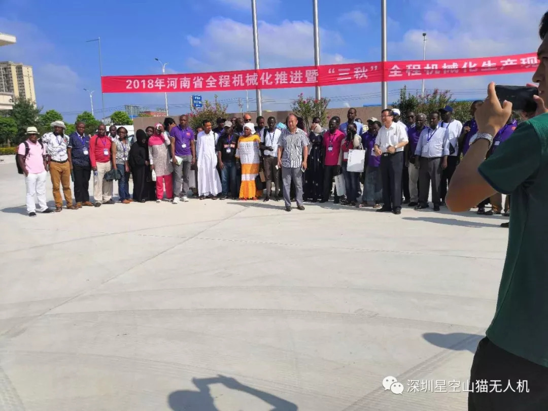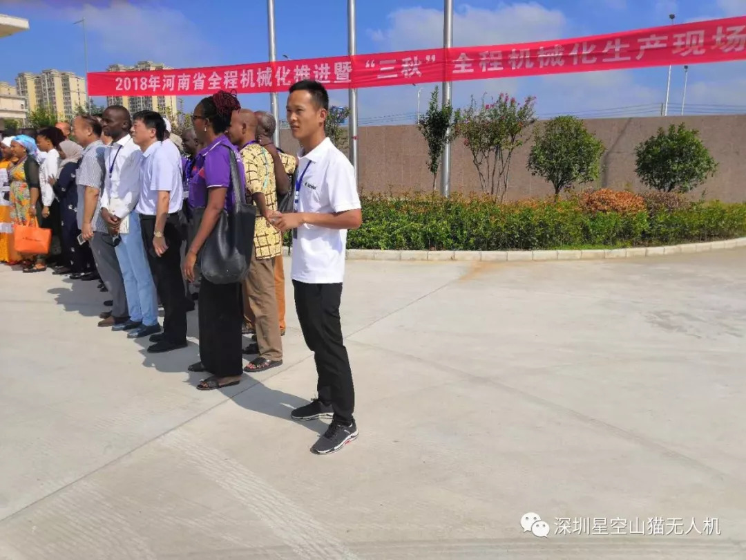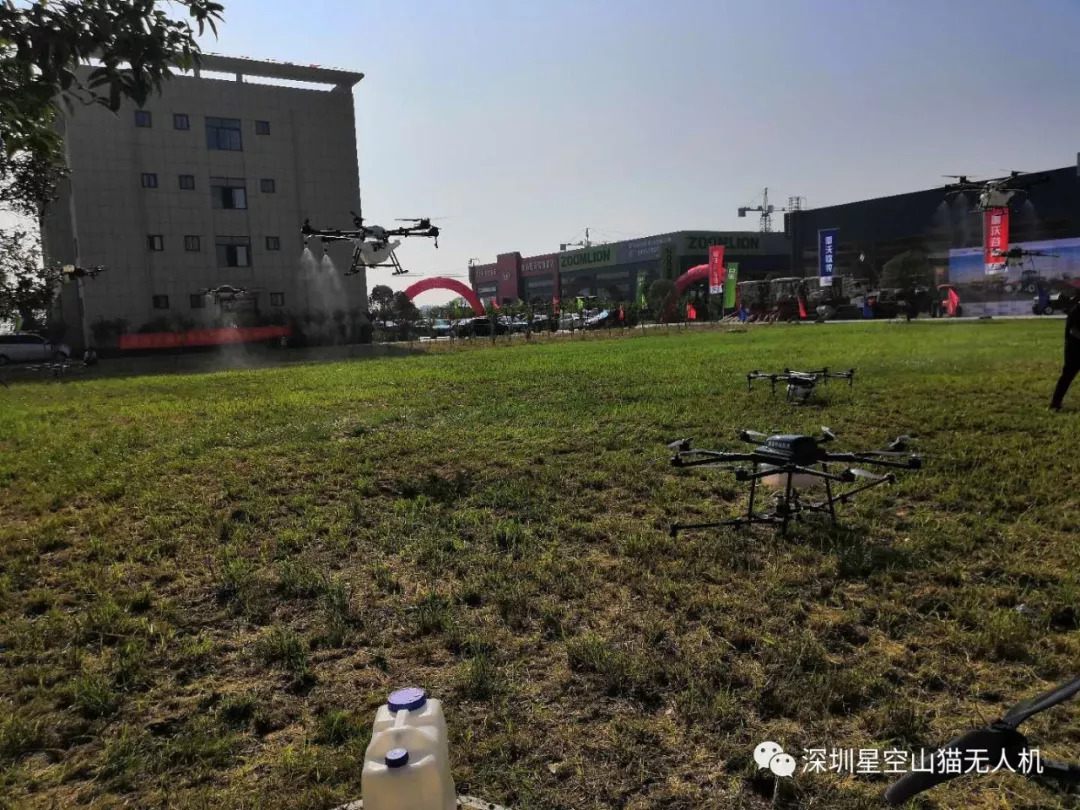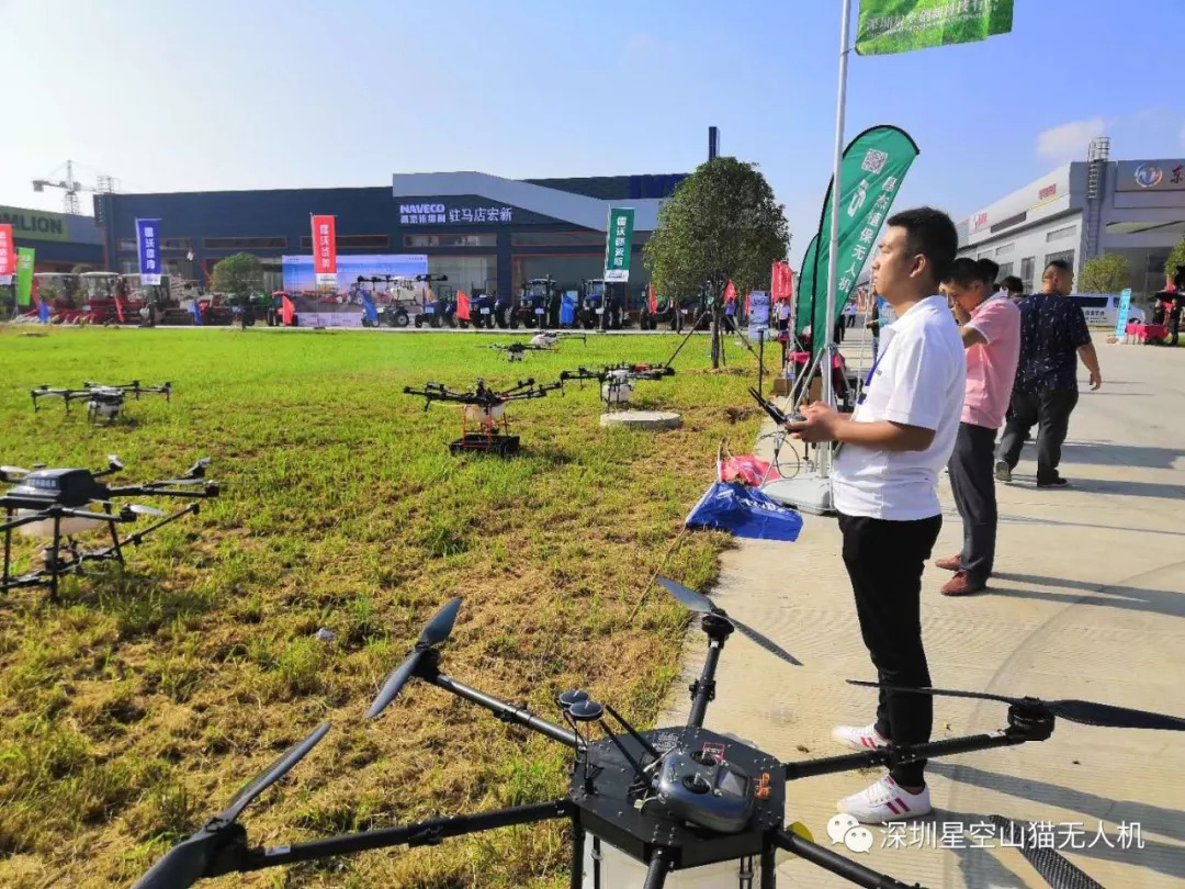 2018年8月21日,我公司携带四架含有国家补贴的无人机分别是3ws6—16三架,3ws8-10 在驻马店长仑农业机械装备产业园现场展示.