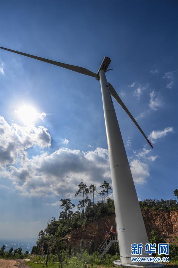 8月23日,工作人员检查弁山风电场风电机组并网及发电运行情况。 新华社记者 徐昱 摄